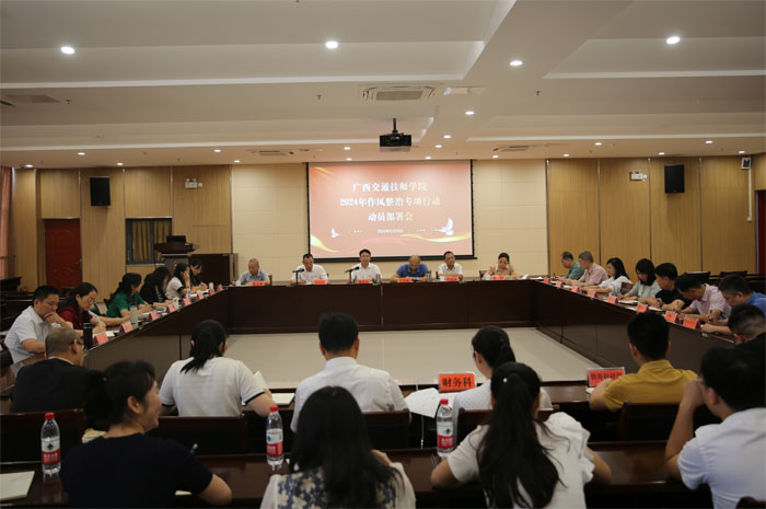 5月29日上午,广西交通技师学院“2024年作风整治专项行动动员部署会”在综合楼1619会议厅召开。党委书记赖国秋作会议小结,纪委书记蒙青山作动员讲话,学院在家院领导、全体中层领导干部、党支部书记参加会议。