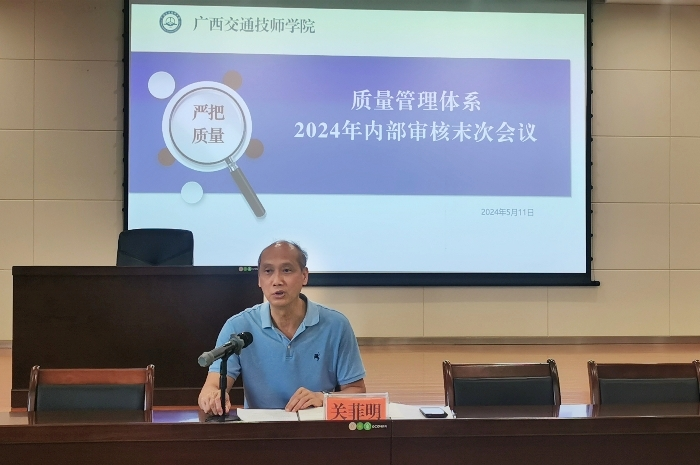 关菲明副院长在内部审核末次会议上作内审工作总结。他首先肯定了质量管理体系运行的可行性,并要求各部门针对审核发现的问题和不足认真分析原因,制定纠正与预防措施。质量监控中心后续做好跟踪验证,确保学院管理体系有效运行及持续改进。