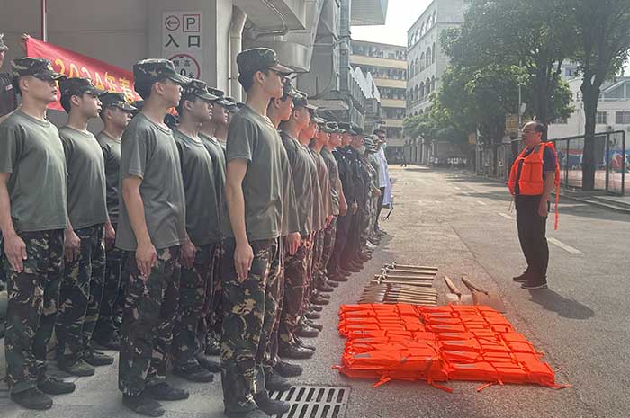为深入贯彻落实习近平总书记关于防汛抗旱的重要指示精神,进一步落实《广西壮族自治区交通运输厅关于做好2024年交通运输防汛防台风工作的通知》工作要求,科学谋划、周密部署、统筹做好学院2024年上半年防汛防台风抢险工作。4月26日下午,学院安全保卫科牵头组织后勤服务科、学生工作科、运升驾校及物业公司、餐饮公司等部门开展防汛抗涝抢险技能演练,100多名师生参加活动。