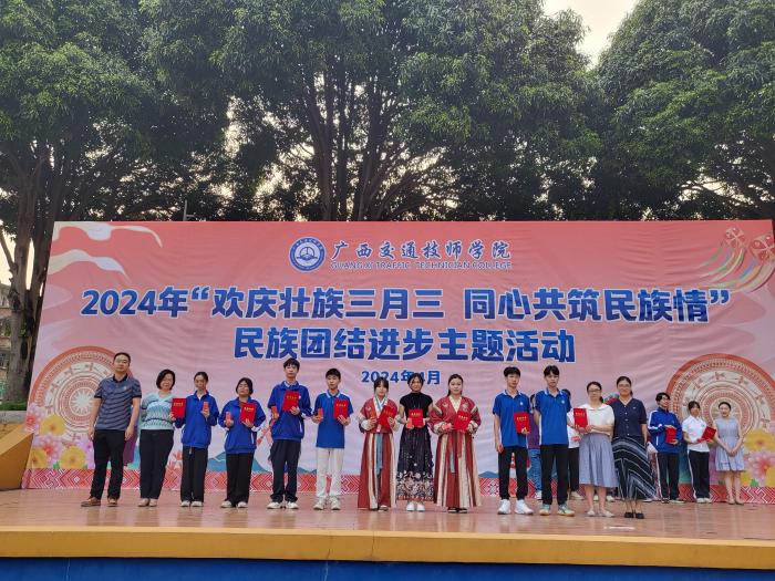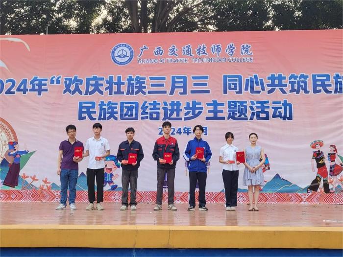 4月3日上午,信息工程系在学院灯光球场举行了2024年广西职业院校技能大赛获奖选手颁奖仪式。学院副院长樊海林为获奖选手颁奖,信息工程系副主任罗莎、陆剑、龚子龙出席仪式为获奖师生祝贺。
