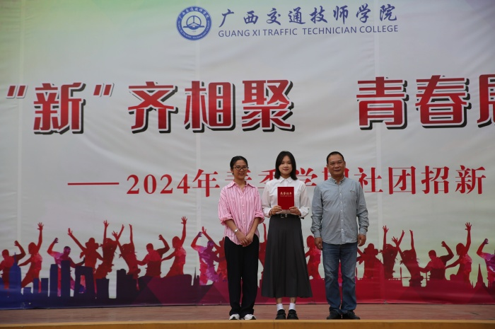 3月28日上午,商务服务系在学院灯光球场举行2024年广西职业院校技能大赛获奖选手颁奖仪式。学院副院长樊海林为获奖选手颁奖,商务服务系副主任许宜昕主持仪式。