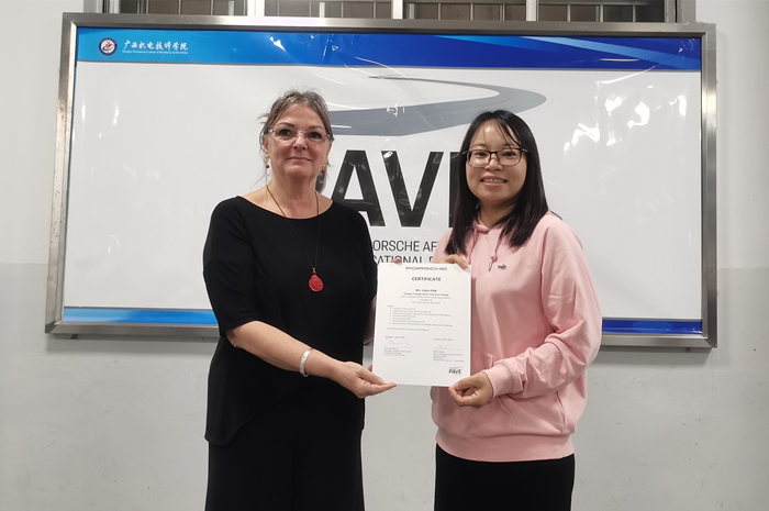 1月15日-19日,2024年首期保时捷德国PAVE职业教育师资研修班在广西机电技师学院顺利开班,来自与保时捷签订PAVE项目合作的全国16所中、高职、职业本科学校的17名教师聚集柳州,参加者均为全国保时捷PAVE项目合作院系负责人、专业带头人、骨干教师。我院汽车工程系副主任潘利丹参加了本次研修班的学习。