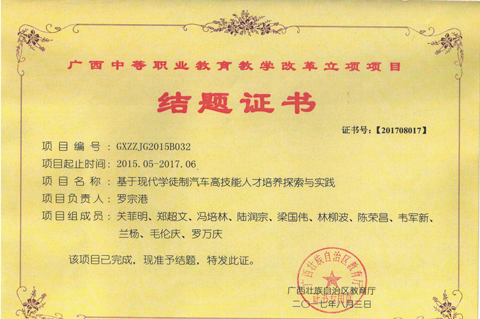 参与汽车钣金与涂装专业国家技能人才培养工学一体化课程标准和课程设置方案开发,开发成果已由人社部职业能力建设司正式公布试用;完成汽车玻璃修复器及汽车侧防护强度检测试验台改造升级,获得新型实用专利2项;获广西职业教育自治区级教学成果一等奖2项;参与编写并出版教材5本。其科研技改成果为行业企业及职业教育研究提供了宝贵的借鉴价值。