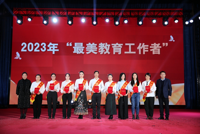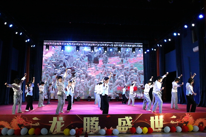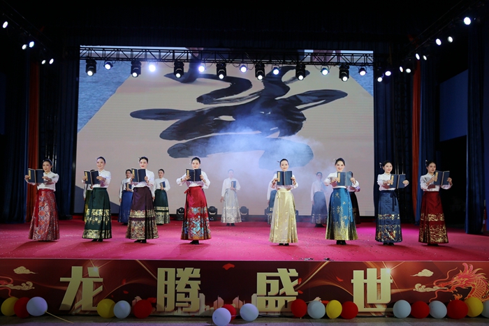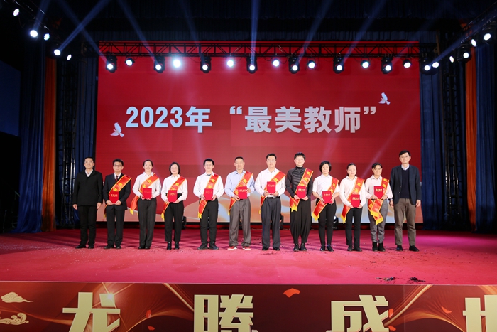 晚会设置了歌颂祖国、青春校园、迎春纳福等三个篇章,涵盖舞狮、合唱、小品、啦啦操等,表彰了最美教师、最美班主任、最美教育工作者30人。