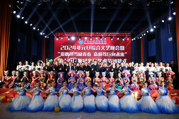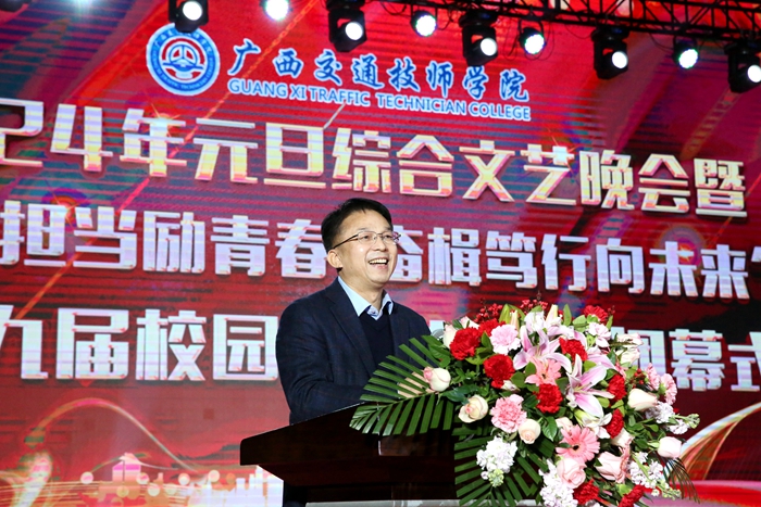 12月28日晚,广西交通技师学院2024年元旦综合文艺晚会暨“挺膺担当励青春 奋楫笃行向未来”第十九届校园文化艺术节的闭幕式在学院礼堂顺利召开。自治区交通运输厅科教处处长韦红教、自治区人力资源社会保障厅职业能力建设处处长周南屏、自治区技工教育研究室主任刘建成、自治区职业技能鉴定中心主任卢有连,自治区交通运输厅直属机关党委专职副书记赵振辉及学院领导出席观看节目。