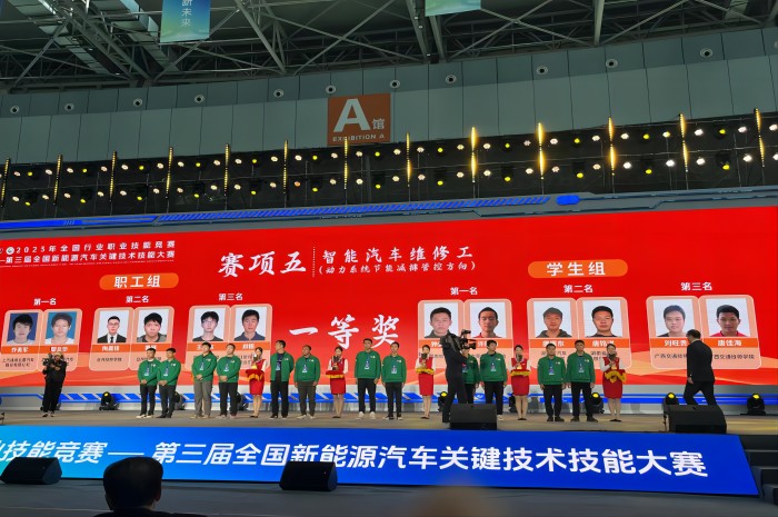12月4日-8日,由人力资源社会保障部、中国机械工业联合会主办的2023年全国行业职业技能竞赛——第三届全国新能源汽车关键技术技能大赛(以下简称大赛)决赛在柳州市举办。本次大赛属于国家一类职业技能大赛,是我国新能源汽车领域最高水准的职业技能竞赛。我院学生刘旺贵、唐佳海荣获智能汽车维修工(动力系统节能减排管控方向)赛项学生组一等奖,谢兆雁、李俊宏荣获汽车电气装调工(智能载运技术方向)赛项学生组三等奖;教师刘小强、朱文佳荣获该赛项职工组二等奖;黄忠前荣获“优秀教练”称号。我院学生首次在该类赛事上获得一等奖,实现了学生获奖等次的历史性突破。