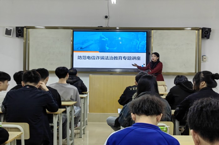 11月22日,学院利用周三晚上“大思政课”第二课堂,覆盖2023级新生班级,组织开设反电信诈骗法治教育第二课堂。