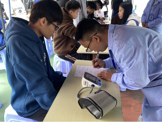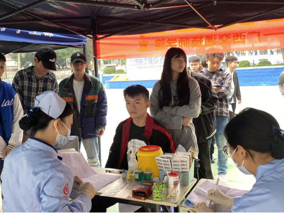 尽管天气寒冷,但师生们的献血热情依旧高涨。在南宁市中心血站工作人员和志愿者们的指引下,师生们依次登记填表、化验血型、采集血样,整个过程井然有序。