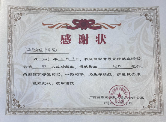为大力弘扬“人道、博爱、奉献”的精神,11月15日,我院联合南宁市中心血站开展“热血致青春 献血勇担当”为主题的爱心献血活动,活动吸引了广大师生踊跃参与。
