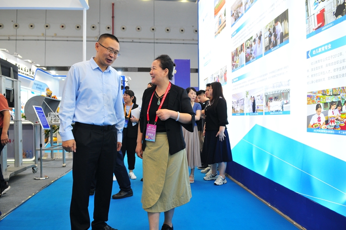 人力资源和社会保障部职业能力建设司二级巡视员张达在学院展位参观