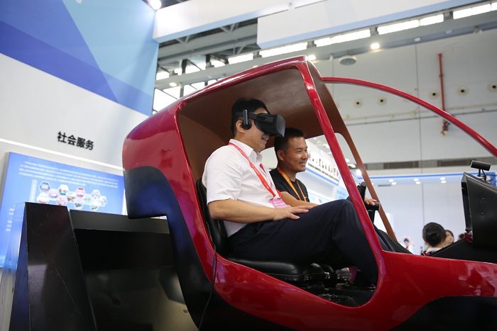 博览会上,人力资源和社会保障部职业能力建设司二级巡视员张达,自治区人力资源和社会保障厅厅长唐标文、副厅长辛卫红来到学院展位前与参展人员亲切交流,参观了解学院展示的直升机飞行模拟器、PFCU 通用部件拆装模拟实训台、智能虚拟喷涂教学实训系统、智能虚拟焊接教学实训系统以及雕刻、果酱画、翻糖蛋糕等作品。