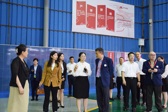 学院院长刘芳代表学院对到访的客人表示欢迎,介绍了学院基本情况,并着重介绍了近年来学院在世界技能大赛、产教融合、校企合作等方面取得的成果。印度尼西亚总统大学校长萧席正一行对学院优美的校园环境、先进的专业设备、鲜明的办学特色给予了高度评价,对学院京东物流实训基地、保时捷校企合作基地等实训场所的建设和人才培养模式表示赞赏,并表示对学生的参赛水平和教师的科研能力印象深刻。