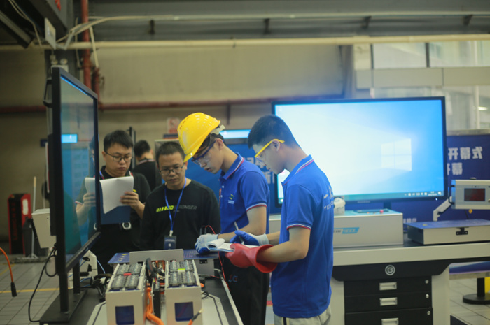 我院凭借着丰富的技能竞赛办赛经验,经过前期精心策划,周密部署,竞赛于10月27日正式开幕。竞赛采取理论知识和技能操作相结合的方式,职工组技能操作项目为新能源汽车故障诊断与排除,学生组技能操作项目为新能源汽车故障诊断与排除、储能及充电装置运维与检测。
