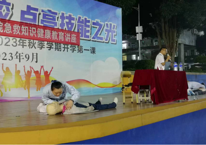 讲座现场,授课专家用专业的操作和详细的动作演示了心肺复苏、海姆立克急救法及止血包扎等实操方法。通过生动的学习和实践演练,现场学生不仅初步掌握了部分现场急救知识,更深刻体会到了生命的可贵,懂得珍惜自己的生命,尊重他人的生命。