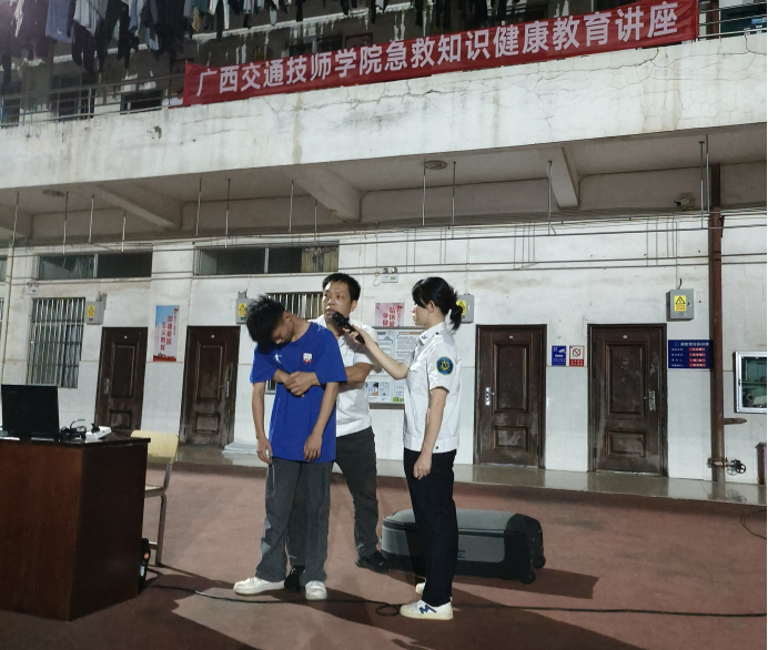 为广泛传播和普及健康知识,增强师生自我保健意识,提高自救互救能力,我学院分别于10月24、25日在邕武校区、伊岭校区、长堽校区邀请南宁市第一人民医院埌东医院门急诊科副主任莫干才及南宁市第五人民医院急诊科主任韦喜洋主治医师开展急救知识健康教育讲座。