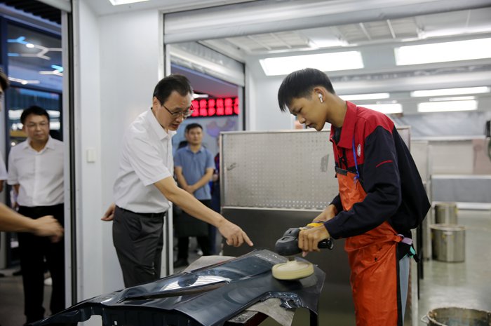 开幕式后,与会领导一行在学院领导的陪同下参观了大赛比赛工位、飞机维修实训基地、汽车喷漆世赛基地、汽车技术世赛基地等实训场所。