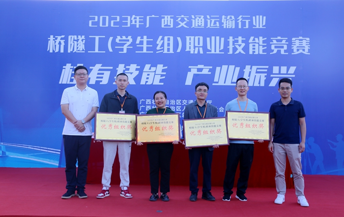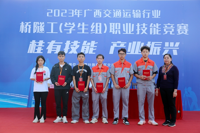 10月21-22日,2023年广西交通运输行业桥隧工(学生组)职业技能竞赛在广西交通技师学院顺利举办。本次比赛共有8支队伍24名选手参加比赛。经过激烈的竞争,广西交通技师学院一队荣获一等奖,广西交通技师学院二队荣获二等奖,广西交通职业技术学院二队、广西建设职业技术学院二队荣获三等奖。
