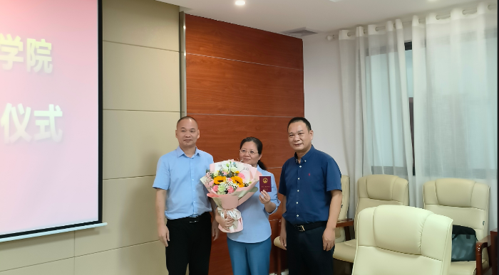 9月22日上午,学院在邕武校区综合楼1524会议室为即将退休的职工陆天云、覃艺萍举行了“干部荣誉退休仪式”,学院副院长樊海林,学院副院长兼工会主席黄七零,人事科、党委办公室、资产管理科、工会等部门领导出席此次活动,并赠送了纪念品。