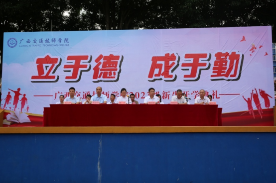 2023级航空服务班伍紫涵同学作为新生代表上台发言。她号召2023级新生牢记师友的热切期盼,播种新希望,放飞新梦想,踏上新征程,在广西交通技师学院这个大家庭里,同心,同德,同行,共同铸造新的辉煌。
