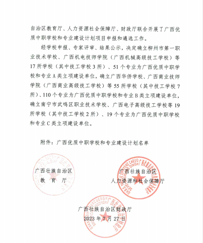 喜报:广西交通技师学院获广西“双优”A类中职学校立项建设单位
