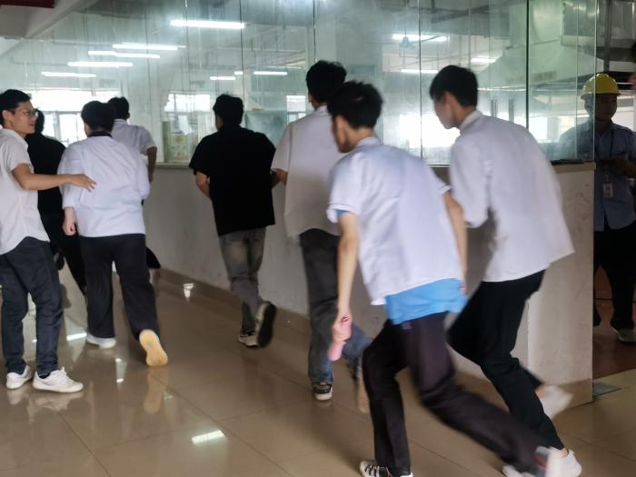 活动的第二部分是模拟室内管道燃气泄漏场景的演练。师生在遇险情况下启动应急预案:教师在室外拨打燃气热线电话3102277报险,组织学生有序撤离。中燃公司接到报险后迅速来校紧急抢险救援,并成功排除险情。随着中燃公司工程师的对讲机传来“广西交通技师学院用户户内燃气泄漏二级抢险响应结束”的响亮声音,演练现场掌声雷动,演练取得圆满成功。