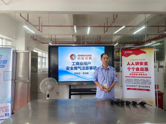 首先是中燃公司客服部黄海鹏工程师作题为《工商业用户安全用气注意事项》的讲课,他从居民用户常见事故案例导入,介绍了天然气泄漏对国家、人民生命财产安全造成的危害,重点介绍了燃气安全事故的处理原则、燃气安全事故的预防措施 。现场讲课互动良好,学生踊跃回答问题。现场教学进一步提高了师生的安全意识、提升了预防和处置燃气安全事故的能力。