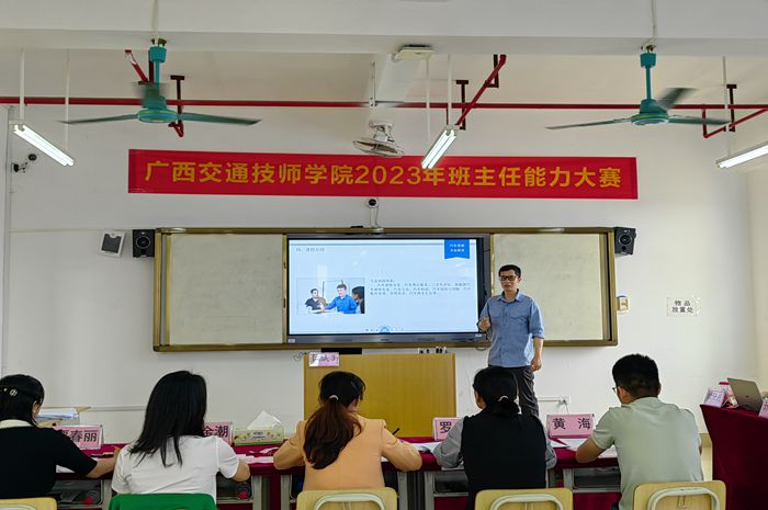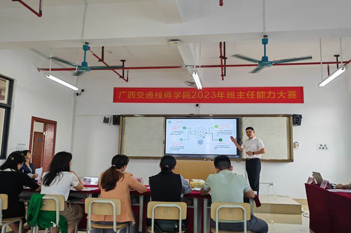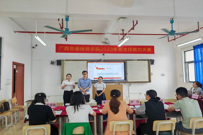 为贯彻落实国家《职业教育改革实施方案》,对接新时期职业教育对班主任能力的需求,进一步深化我院班主任队伍建设,5月24日下午,我院在综合楼703室举办班主任能力大赛决赛。共有4个参赛团队共12名班主任进入决赛,经激烈角逐,最后来自汽车工程系的侯林倩、黄炜、罗万庆参赛团队获得一等奖;信息工程系的蓝景干、李云甫、陈海林参赛团队获得二等奖;交通工程系的梁翰兴、杨柠瑞、曾馨漩参赛团队及商务服务系的曾令莹、张惠、覃毅团队并列获得三等奖。