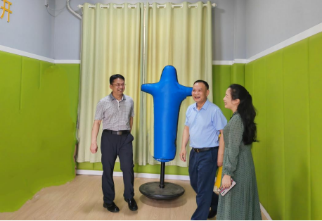 赖国秋(左一) 樊海林(左二)视察情绪宣泄室