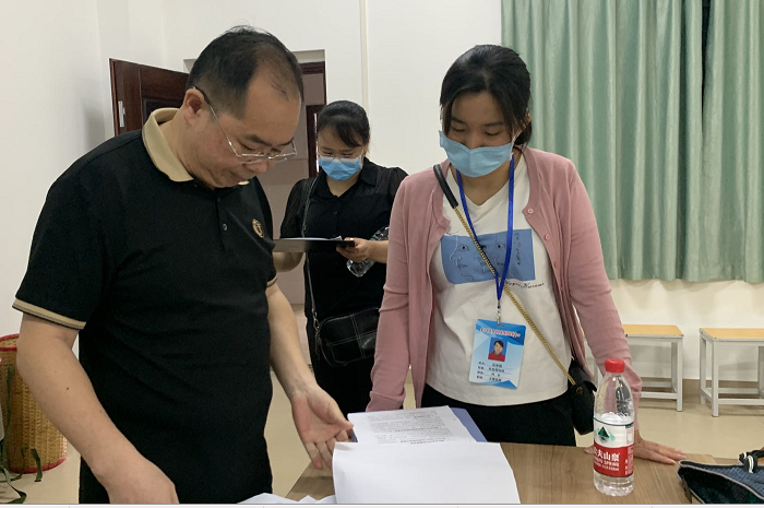 为配合武鸣区政府和武鸣教育园区疫情防控工作小组落实好校园防疫和防传染病工作, 5月3日上午,武鸣区疾控中心伍幸娟科长一行到我院伊岭校区开展校园防疫和防传染病工作督导。学院安全保卫科科长陆佳、后勤服务科医务室人员、广发物业公司和交通工程系老师陪同督导。