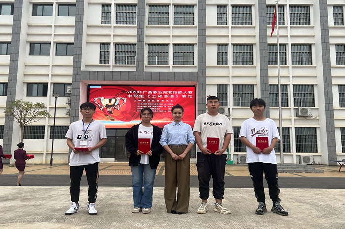 近日,我院两支参赛队在2023年广西职业院校技能大赛中职组《工程测量》赛项中,分别荣获二等奖和三等奖的优异成绩。3月20日上午,学院交通工程系在伊岭校区举行隆重的颁奖仪式,学院党委书记赖国秋莅临现场,并为获奖选手颁奖。