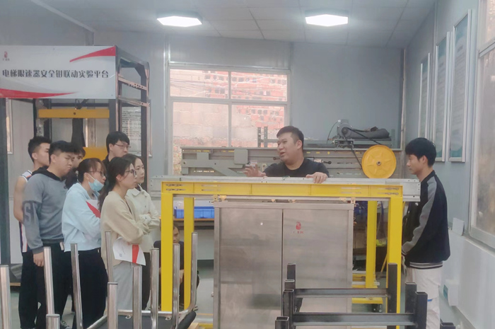 培训内容主要包括电梯限速器安全钳联动平台的操作、限速器模拟仿真装置的使用、电梯层门和轿门的结构和工作原理以及电梯绳头组合的更换等。方俊华根据多年的电梯工程设计和施工经验,向老师和同学们深入讲解电梯中各种关键性部件的性能分析及处理方法。教师们在培训中不仅增强了安全意识,同时对电梯行业发展趋势、人才培养方向有了新的认识。