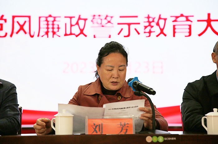 刘芳总结指出,各部门一要以案为鉴,汲取教训,对照案例认真开展剖析,加强警示教育;二要自查自纠,防范风险。排查重点领域、关键环节、关键岗位的廉政风险,建立健全工作制度,做实做细“后半篇文章”。