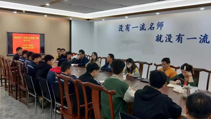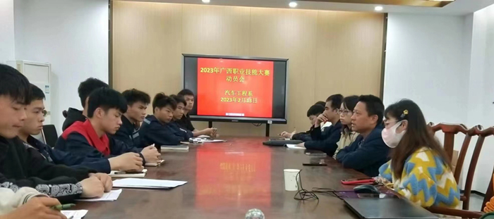 为更好备战2023年广西职业院校技能大赛,充分调动指导老师和参赛选手的积极性,能在大赛中取得更好的成绩。2月13日上午,汽车工程系在李春技能大师工作室会议室召开大赛动员会。汽车工程系主任毛红孙,副主任李宣葙、潘利丹,世赛办副主任方世仁,以及各赛项指导老师、参赛选手参加了本次会议。