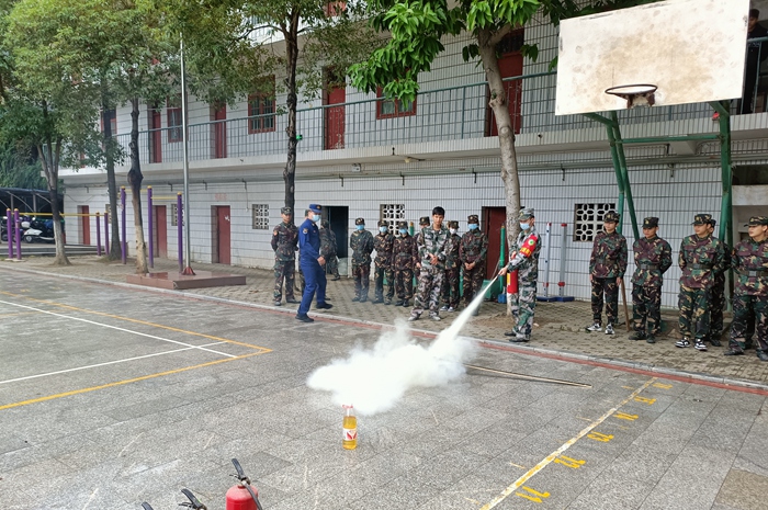 教官演示使用灭火器灭火