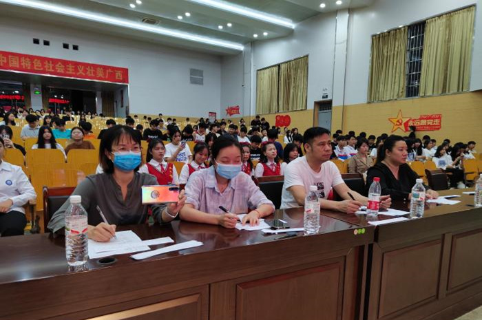 比赛现场掌声雷动,精彩纷呈。同学们通过声情并茂的诗歌朗诵和别出心裁的表演方式,展现了青年学子昂扬奋进的精神面貌,给观众们留下深刻的印象,整个礼堂飘扬着爱国爱党的主旋律。