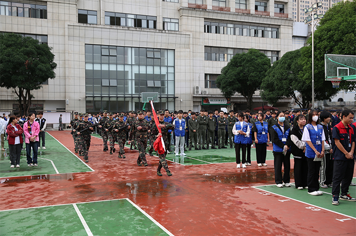 随着国旗护卫队队员迈着整齐矫健的步伐入场,升旗仪式正式开始,全体师生奏唱国歌,满怀深情地注视着国旗冉冉升起。