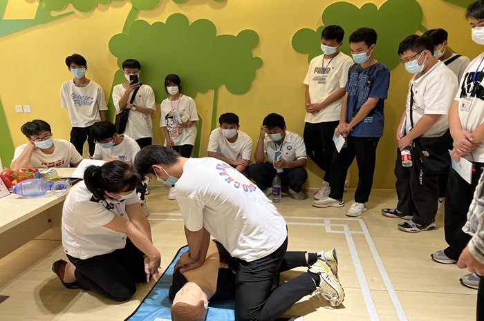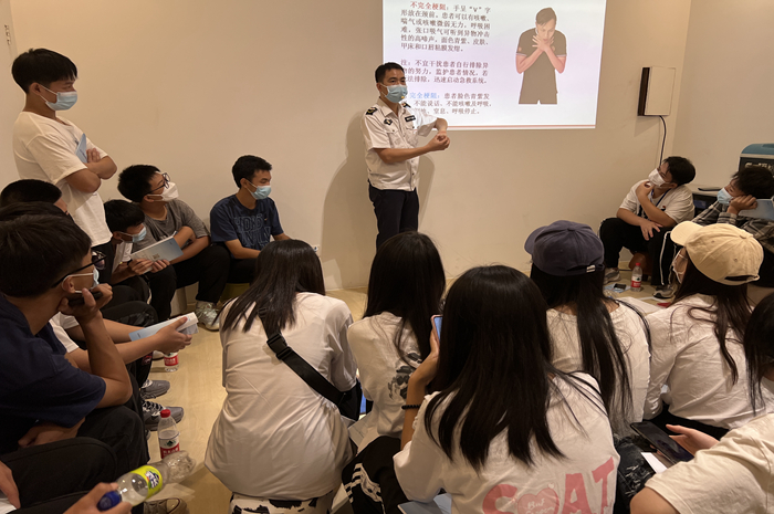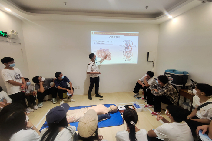 同时,为了提高师生应急救护能力,筑起生命保护墙,南宁中心血站为我院师生聘请专业急救人员讲授了一场特殊的健康课——心肺复苏+AED使用的急救培训。急救培训专家结合理论知识和实际救护技巧对大家在生活中遇到的突发状况急救、徒手心肺复苏、AED自动体外除颤器使用等内容作详细的讲解,并强调相关急救手法和注意事项。