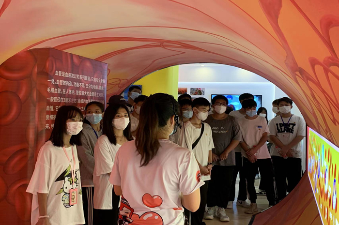 在血站工作人员的带领和讲解下,参与活动的师生依次参观了血液科普展示区、无偿献血知识展示区、血站站史展示区、实践活动区,体验了包括血型遗传互动、人体血液重量测量仪等多种互动项目,让大家认识了什么是无偿献血以及血液对人体的重要作用和无偿献血的重要意义。