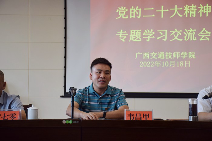 会上,学院副院长关菲明,党委副书记、纪委书记韦昌甲,副院长樊海林、黄七零,副处级干部陆天云分别围绕学习贯彻党的二十大精神,结合分管领域工作实际交流心得体会。