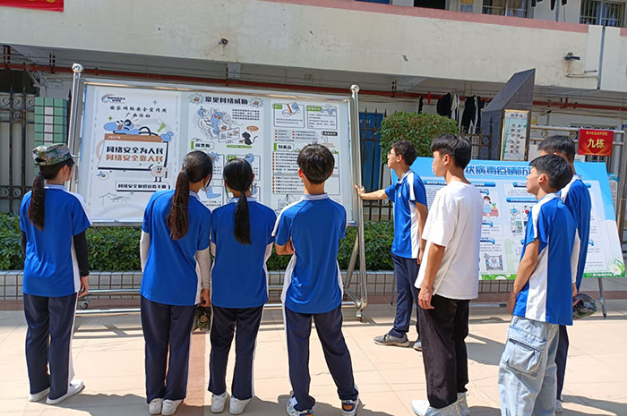 学生在观看网络安全宣传展板