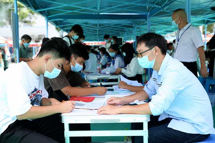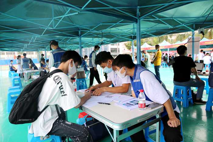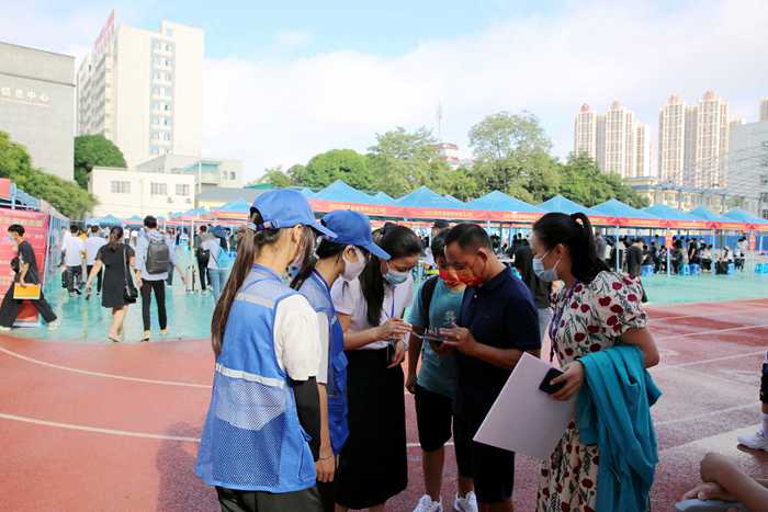 工作人员及志愿者为新生及家长解答疑惑