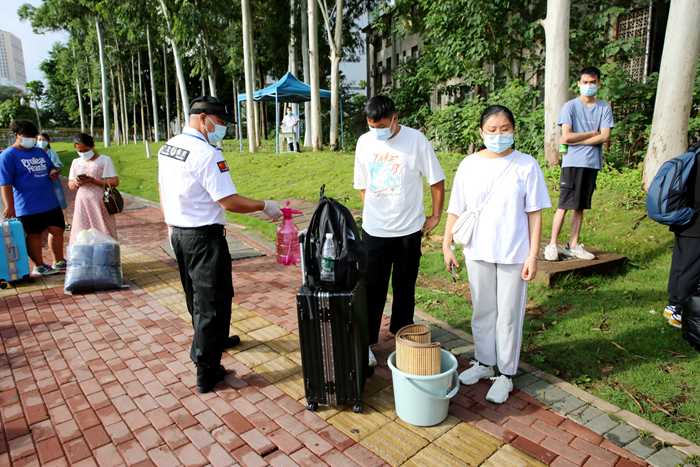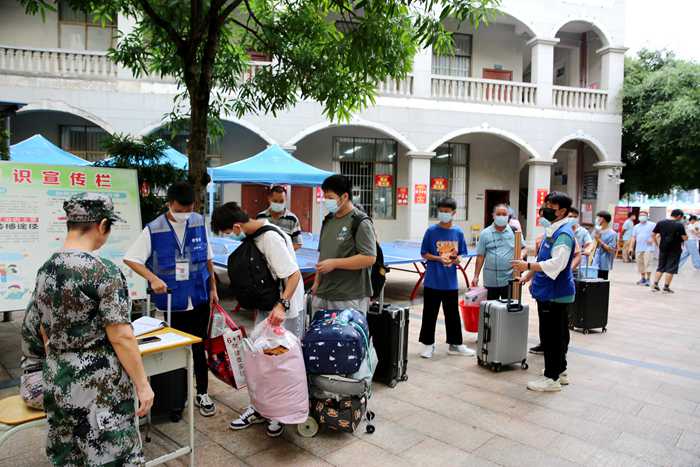 为确保新生入学工作安全有序,学院提前进行部署,将疫情防控作为新生入学报到工作的重中之重,从严落实各项防控措施,暂缓中高风险地区新生报到,符合报到条件的低风险地区新生入校必须持48小时内核酸检测阴性证明、健康码绿码以及行程码绿码方可入校。安保人员严格值勤、巡逻、维护秩序、消毒行李,提醒入校新生及家长全程佩戴口罩、保持安全间隔、测量体温;校医24小时在校门口、健康观测点值守,切实保障师生健康……
