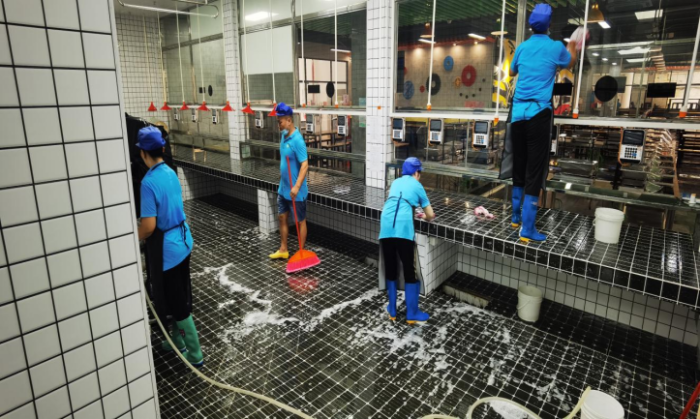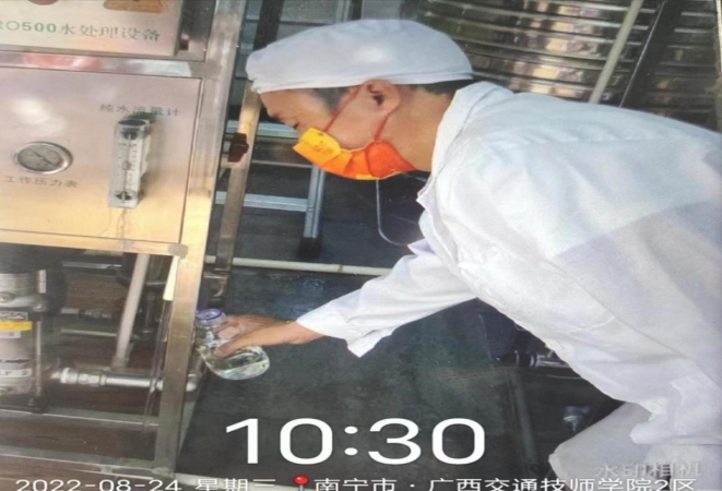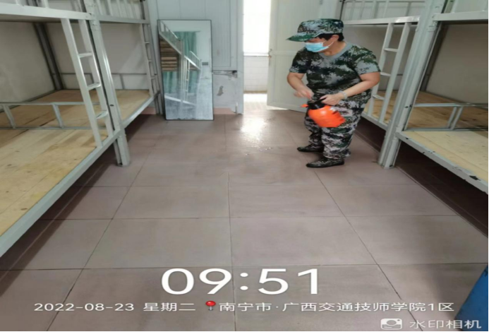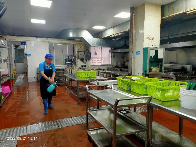 会后,后勤服务科集中开展了校园环境卫生整治,针对教室、楼内公共区域及卫生死角开展大扫除,集中清理校园枯枝落叶、修剪校园绿化,全面检修维护校园路灯、浴室、热水系统设施、配电室、泵房、电梯、学生宿舍床架等设施设备,完成了校园公共区域及学生宿舍的消毒、消杀工作,确保环境整洁、安全。同时,为了保障饮用水和食品安全,后勤服务科委托广西金演饮用水科技有限公司到校进行直饮水检测;并组织人员对食堂开展食品安全检查,杜绝三无产品进入校园,做好食堂的消毒、消杀各项工作。