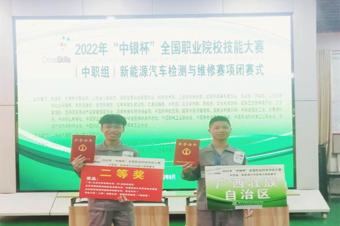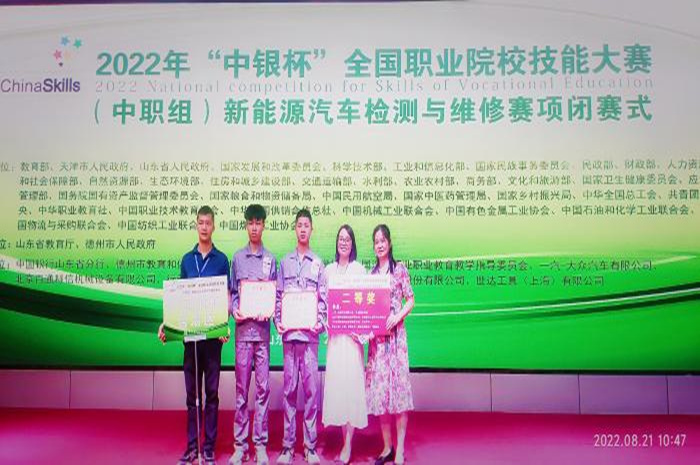 8月18日至21日,2022年“中银杯”全国职业院校技能大赛(中职组)新能源汽车检测与维修赛项在山东省德州交通职业中等专业学校举行。学院汽车工程系学生陆俊全、陆安祺代表广西征战本次大赛并荣获全国二等奖。