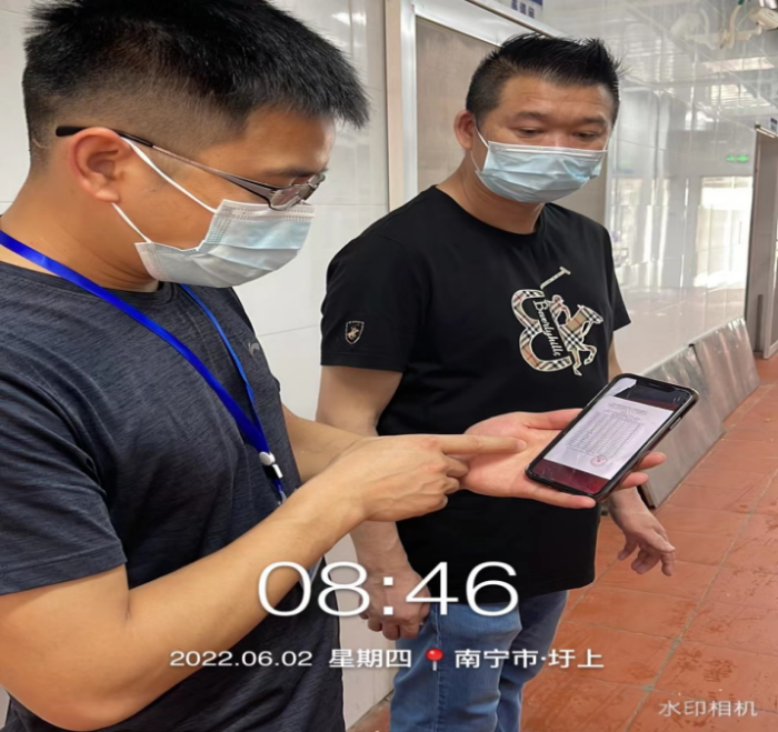 后勤服务科管理人员检查伊岭校区食堂冷链食品的进货渠道清单