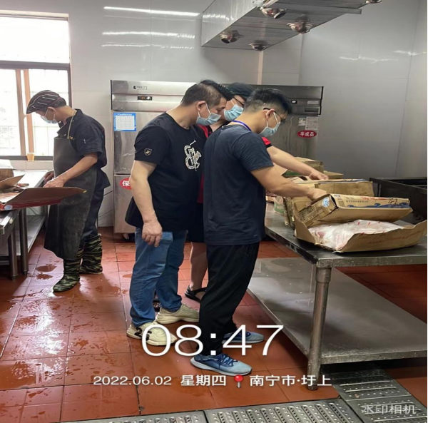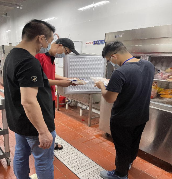 后勤服务科深入餐厅、厨房、库房(粮库、调味仓库)等地,重点检查冷链食品的检验检疫合格证及进货渠道等情况,并针对食堂用水用电、安全通道、环境卫生、食品卫生、消防消毒等情况进行了全面、细致地检查。此次突击检查的结果均满意。