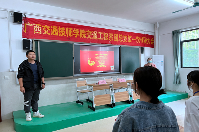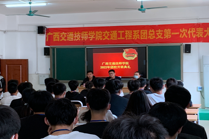 为了做好团组织发展工作,增强共青团组织的吸引力和凝聚力,凝聚学院建设的青春活力,努力培育社会主义事业接班人,5月16日下午,广西交通技师学院交通工程系2022学年业余团校开班仪式在伊岭校区无人机教室举行。交通工程系团总支书记熊玮、副书记徐寅彪、系部团委干事包昌平,以及160余名申请入团的交通工程系学生参加本次开班仪式。
