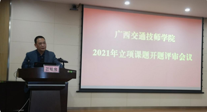 3月16日,广西交通技师学院2021年立项校内科研课题开题评审会议在综合楼1619会议室举行。学院副院长樊海林,评审组李嵩教授、冯培林教授、封桂炎教授、李宣葙教授及张振旺教授参加会议,会议由教务科研科科长唐艺支主持。