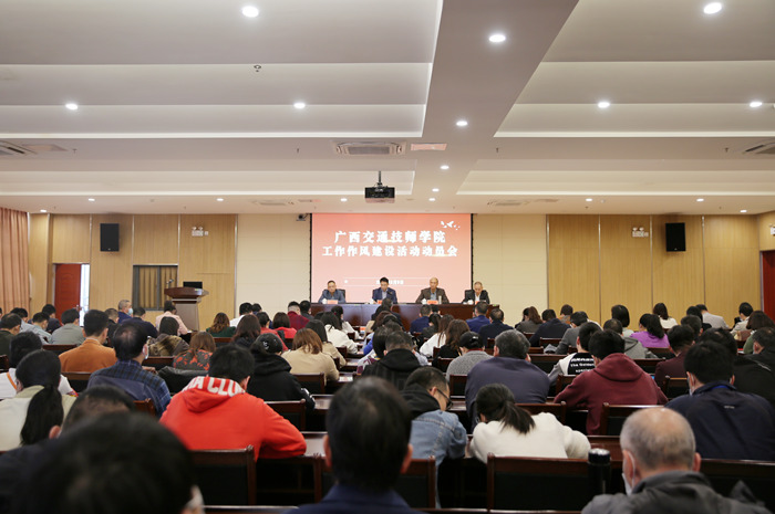 为贯彻落实自治区第十二次党代会精神及自治区交通运输厅关于作风建设的要求,3月9日,学院在综合楼1619会议室召开工作作风建设活动动员大会,学院领导及全体教职员工参加会议,学院党委书记赖国秋主持会议。