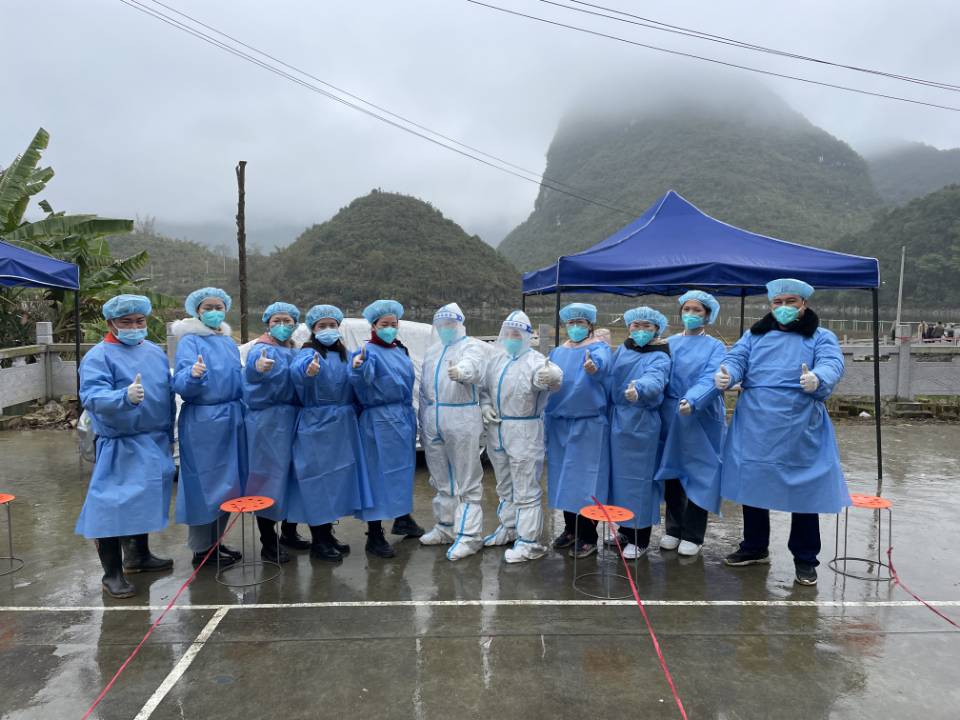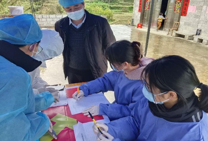 我加入田东县青年愿协会,协助开展核酸检测筛查。在第一轮的核酸检测筛查中,因为系统不完善,志愿者们通过手写记录了几千人的信息。为了照顾不方便行动的人员,保证做到全员核酸,医护人员和志愿者们入户做核酸。因为百色山地居多,一些村子比较偏僻,交通工具只能走一段路,加上阴雨绵绵的天气,道路比较泥泞,医护人员和志愿者只能拄着树枝前行。2月14日,我们检查到有部分人员只做了一到两次核酸检测,便连夜赶到居民家中采集核酸样本,工作一直持续到凌晨两点。广西百色抗疫中逆光中奔跑的身影令人动容,每个人都在用自己的方式守护家园。